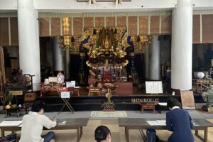 前半は仏教体験の本堂で行いました。