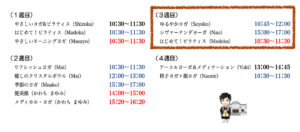 〜今週のレッスンスケジュール〜