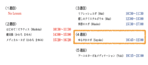 〜今週のレッスンスケジュール〜