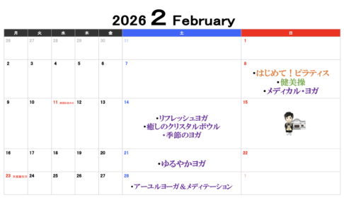 ココヒカスタジオです🧘♂️ 2月のレッスンスケジュールです📝 まだまだ寒さが残る2月。 ゆったりとした呼吸とやさしい動きで、...
